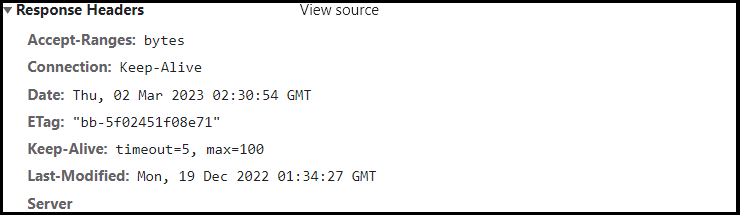 - 개발자도구를 사용해 response header를 확인해보면 아래와 같다.