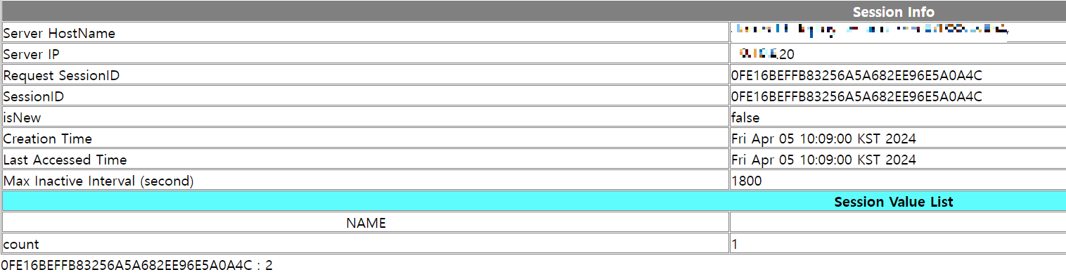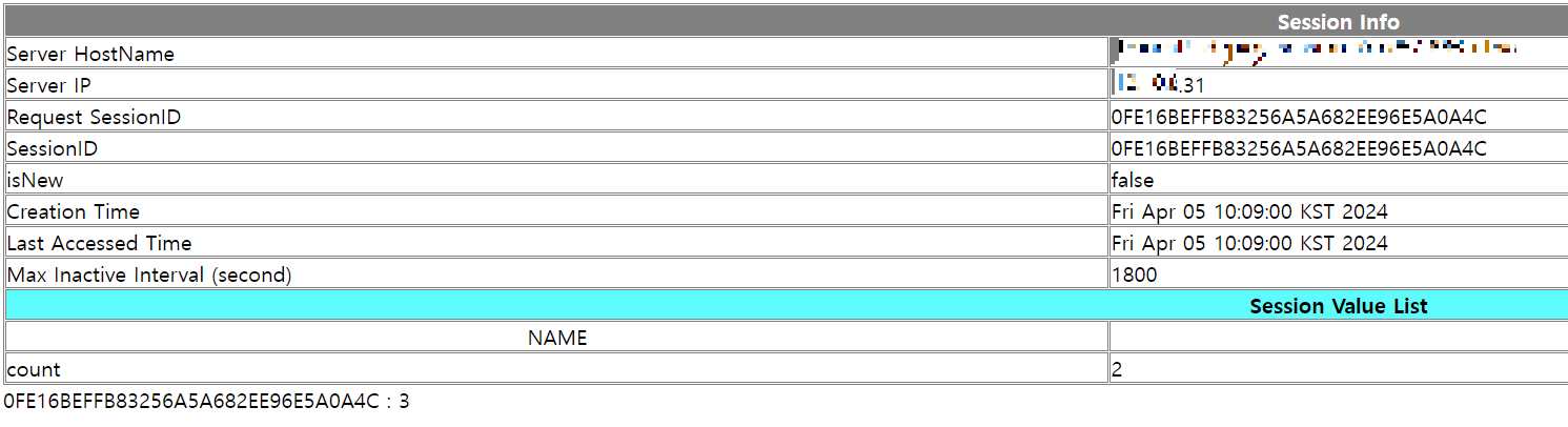- 호출2 : IP 끝자리 31, SessionID: 0FE16~~4C
